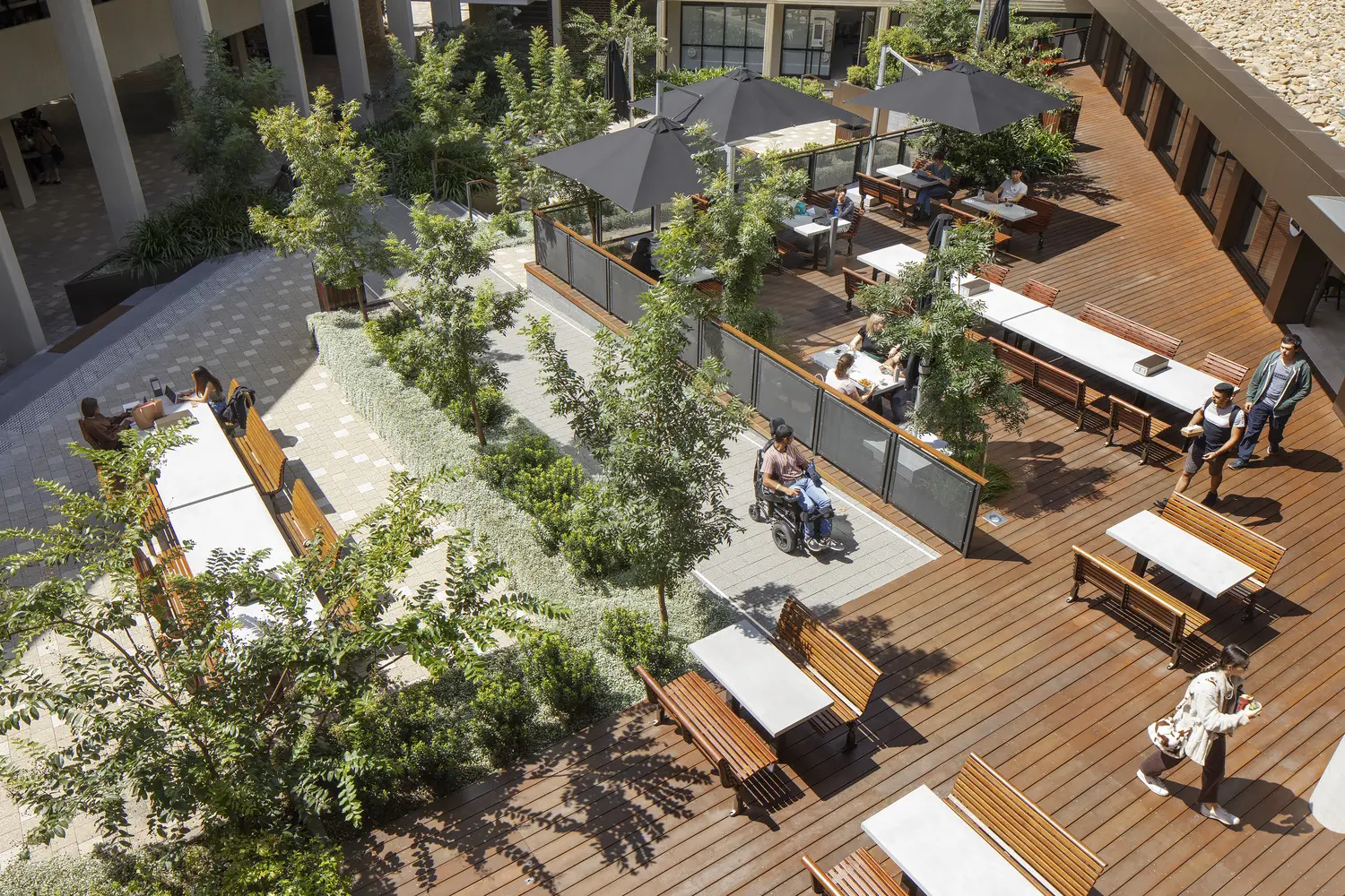 The Becton Dickson Public Realm Upgrade project formed part of the body of work to de-traffic the campus and prevent the campus roads from being used by ‘through’ traffic. The work required was to provide a new access to the F3 car parks to allow the closure of Research Park Drive to construct a major new southern entry to the University. These new public domain initiatives support a range of objectives outlined in the 2014 Campus Master Plan.